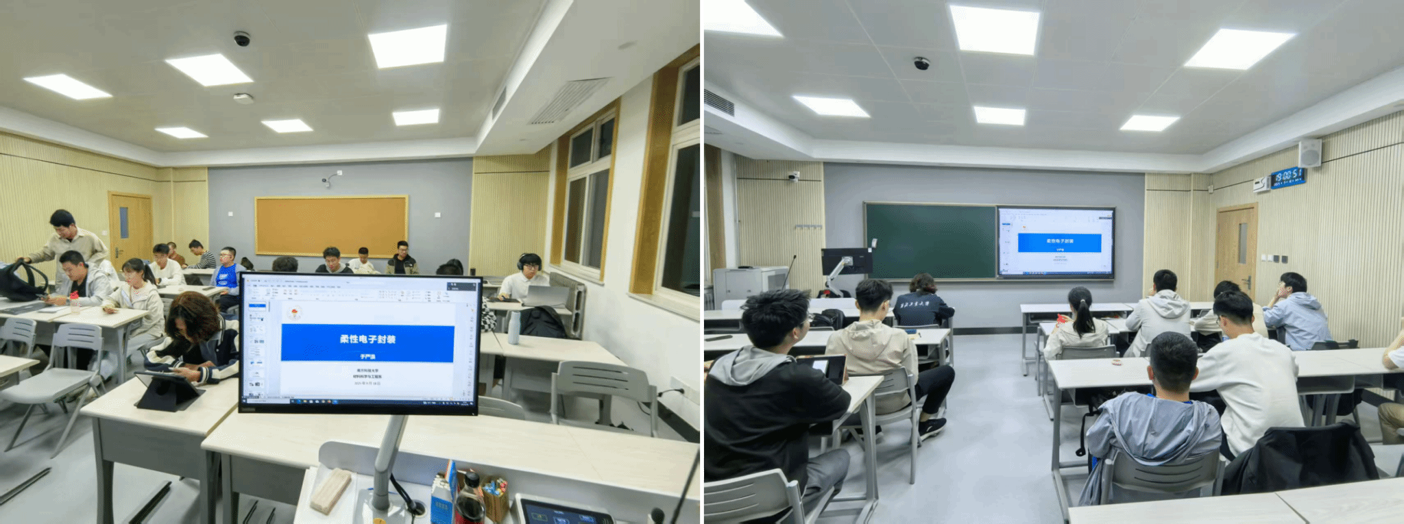 在课堂结束后,结合系列讲座中各位老师的授课内容,同学们实地参观了实验室,亲身接触了解了一个柔性生物电子器件从设计、选材、制造、测试到应用的全流程,将课堂学习到的知识真正融入实践,开展了深度思考。