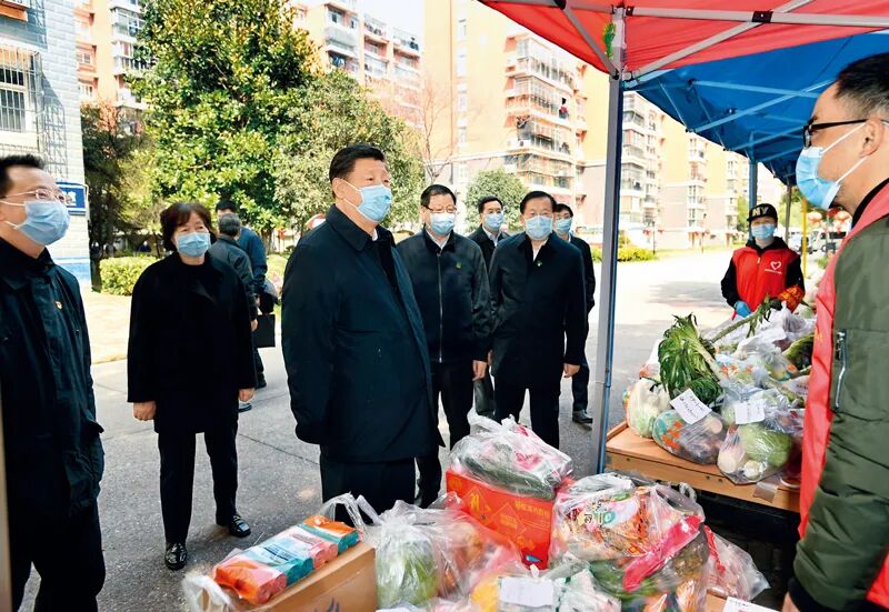 这是习近平在东湖新城社区生活物资集中配送点,详细询问社区群众生活物资采购和供应情况。新华社记者 谢环驰/摄
