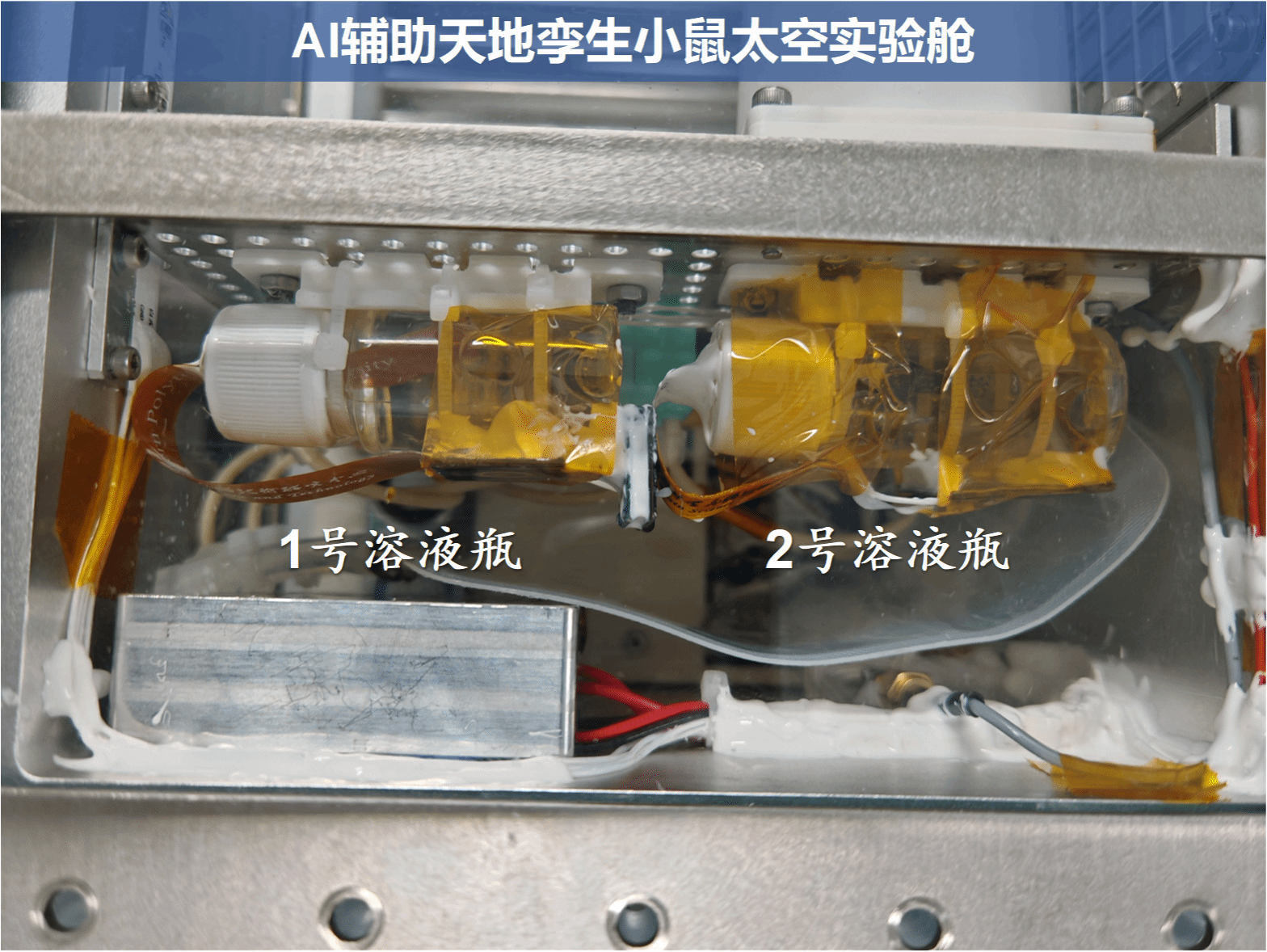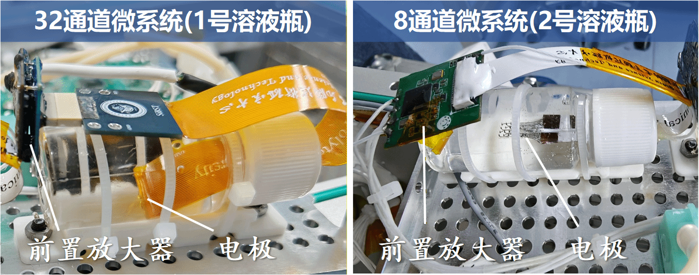 本次任务创新采用“动物舱”和“独立舱”双室环境协同验证模式。其中一套深脑和皮层脑机接口微系统装载于AI辅助天地孪生小鼠太空实验舱(AiTEM载荷舱),作为实验组与小鼠共同处于真实舱内环境,AiTEM载荷舱内包括净化风扇、照明、自控出水装置、气阀等复杂噪声环境信号。另外一套完全相同的微系统,作为对照组置于密闭迷你太空实验室(独立舱),有效隔绝上述噪声源。系统可在溶液环境中在轨长时间记录太空辐射、微重力等复杂环境下的电磁噪声数据,用于评估其长期稳定性。此次验证为解决长时间无线供能、无线低功耗数据回传奠定基础,为下一步开展无人化“在轨、在体、在线”的小鼠神经活动记录及行为关联研究提供技术支撑。