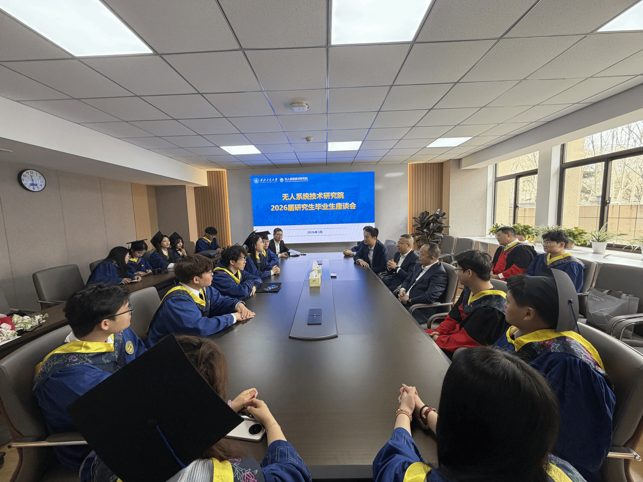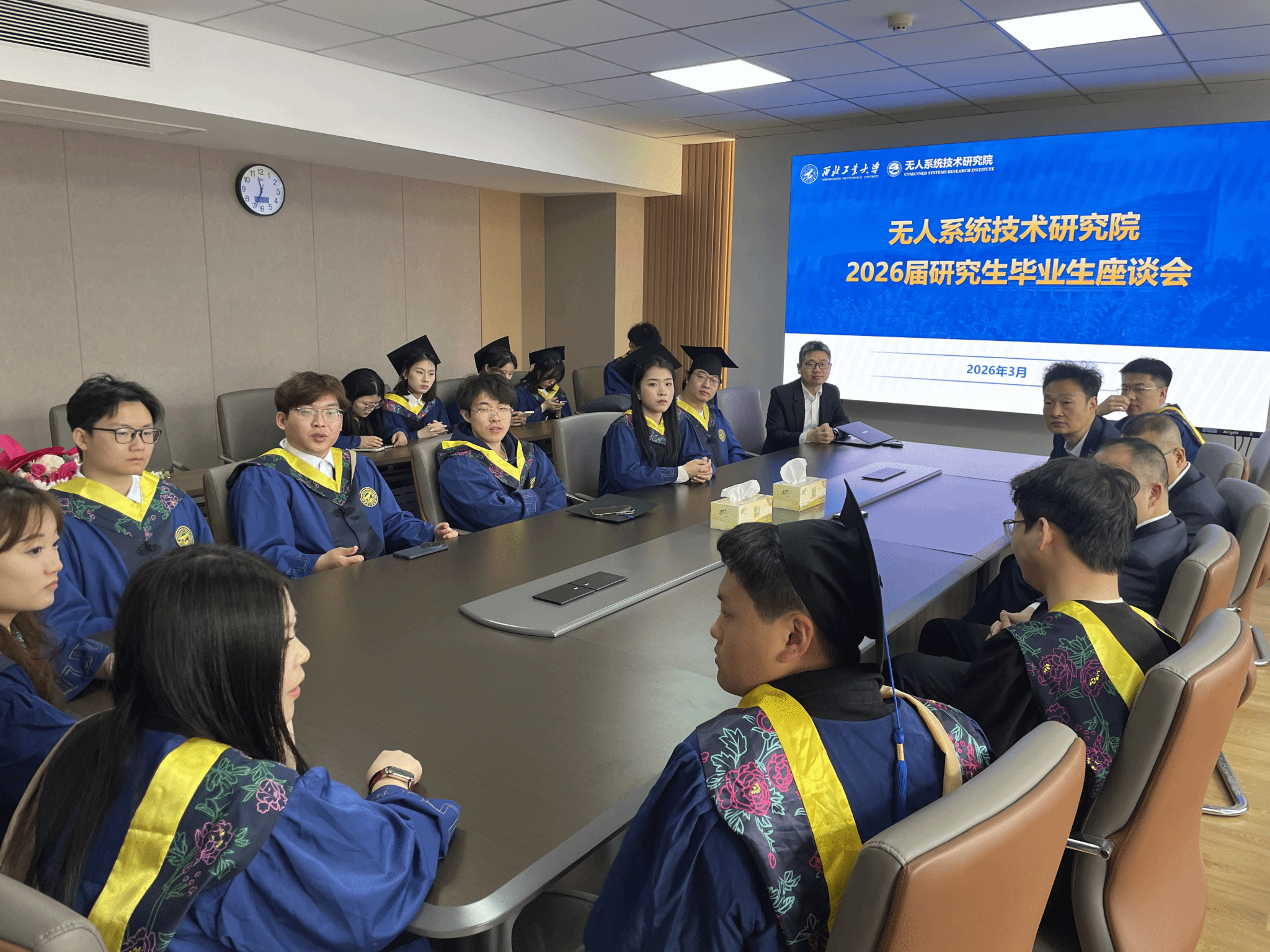 为深入了解毕业生成长收获与发展诉求,进一步提升研究生培养质量与管理服务水平,3月29日,无人系统技术研究院组织召开了2026届研究生毕业生座谈会。研究院院长白俊强、党委书记毛昭勇、辅导员李阳、韩凯及毕业生代表参加会议,围绕人才培养、科研实践、就业发展等方面进行了深入交流,会议由研究院党委副书记徐晓峰主持。