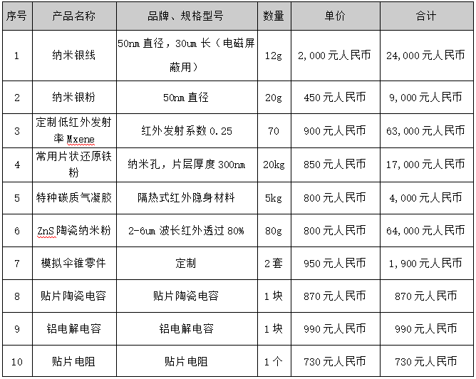一、项目名称:飞行器对接结构红外模拟样件及测试板材料