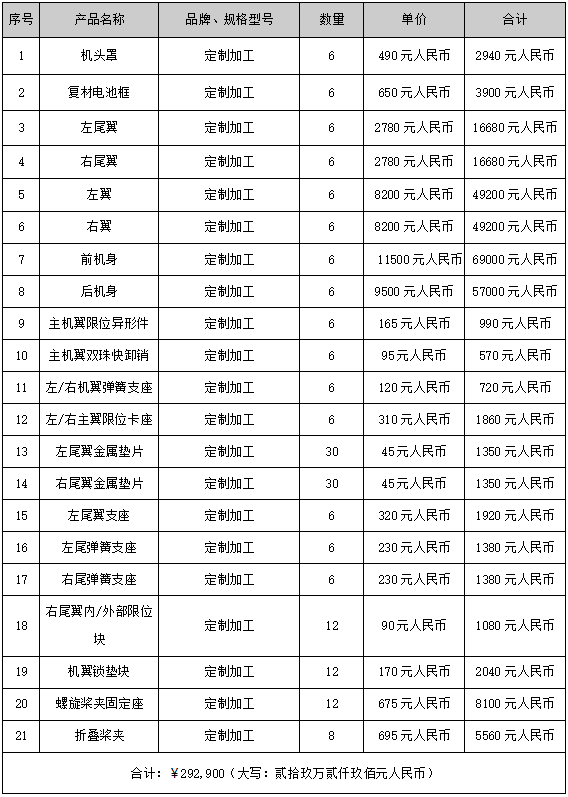 一、项目名称:某验证无人机试验试飞易损备件