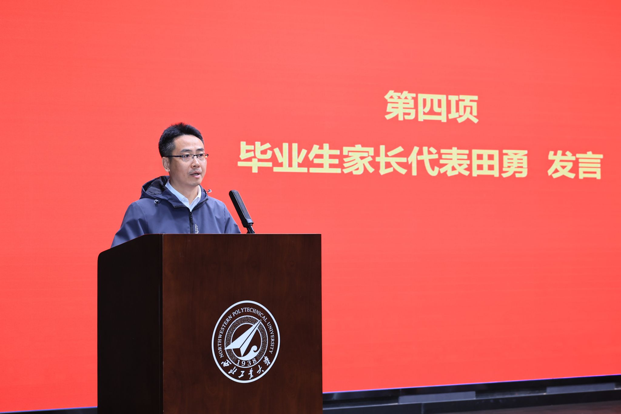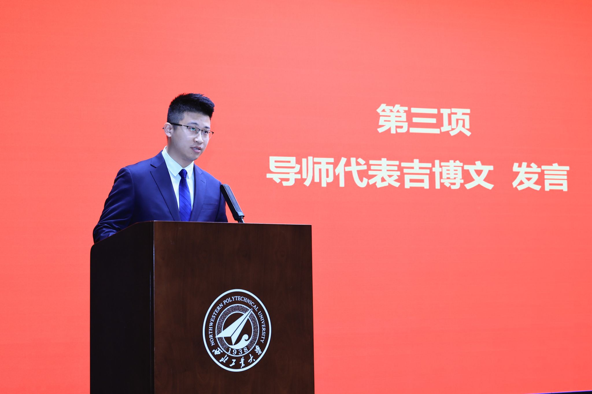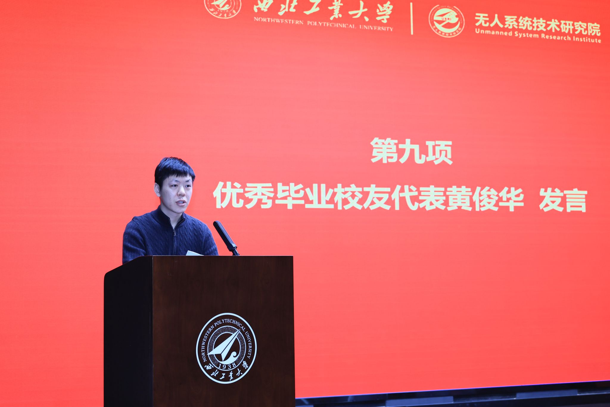 毕业校友代表黄俊华结合自身职场经历,分享成长感悟与实践心得。他鼓励全体学弟学妹勇迎挑战、锐意创新,在无人系统领域勇毅前行、实干担当,续写西工大人的使命与荣光。