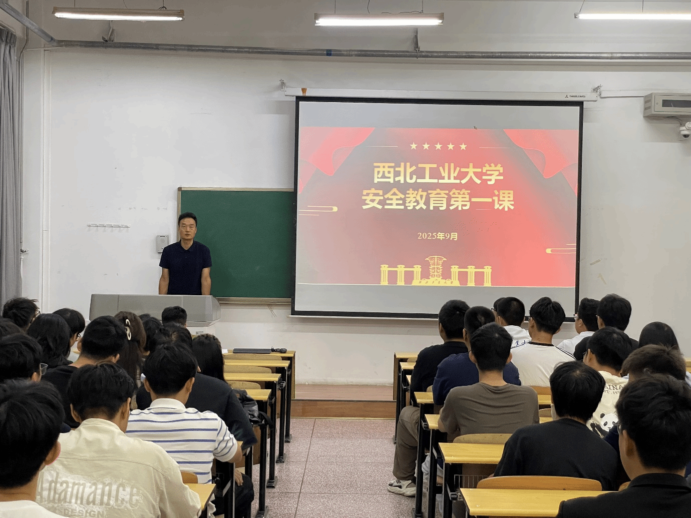 徐晓峰讲授了“安全教育第一课”,徐晓峰书记在介绍中强调,高校安全教育要点在于提升安全认知水平、培养必备安全意识以及加强在校学习生活安全防范这三个部分,并以此为核心展开,从校园消防安全、用电安全、财产安全、网络安全等多个维度,结合真实案例为同学们普及安全知识,提醒大家提高安全防范意识,筑牢校园安全防线。