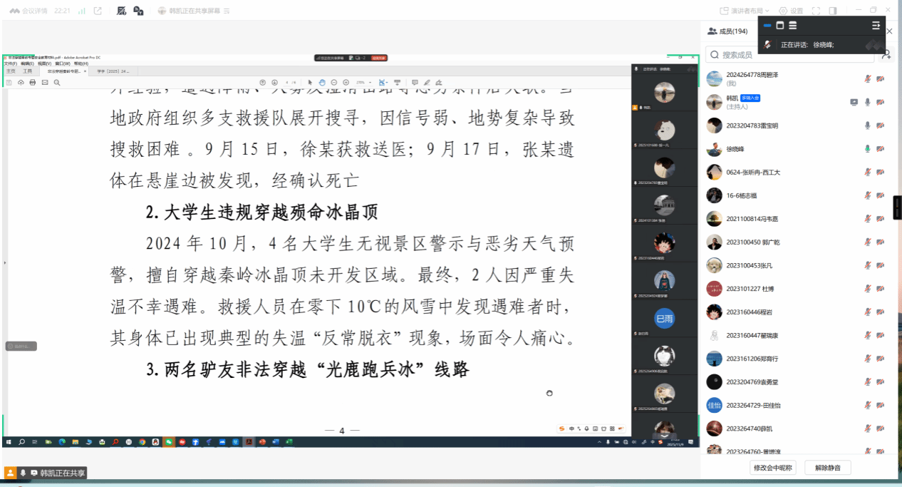徐晓峰首先明确了严禁非法穿越秦岭的底线要求,详细解释了非法穿越的定义,之后结合典型案例阐述了其可能引发的生态破坏、人身安全威胁及法律追责等严重后果。会议特别强调了鳌太线、冰晶顶等重点区域的管控规定。
