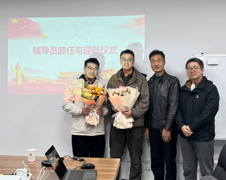 在新任辅导员韩凯的迎新仪式上,研究院对韩凯老师的正式加入表示热烈欢迎。发言环节中,韩凯老师分享了自己的任职初心,对研究院优秀前辈和同学们的大力支持表示感谢,他表示将认真汲取前几任优秀辅导员前辈的宝贵经验,牢记辅导员的工作职责与使命,快速熟悉岗位业务、融入集体,用扎实的行动不负研究院的殷切期望,同时他也对未来的工作充满热忱与憧憬。徐晓峰为韩凯老师献上鲜花,徐晓峰则结合韩凯老师入职以来的优秀表现,对他的潜力给予肯定,并表达了对其未来在岗位上发光发热、助力学生成长与研究院发展的殷切期许。
