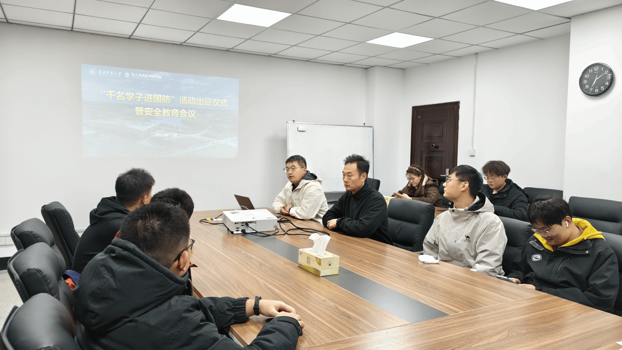 活动出发前,11月18日晚,无人系统技术研究院在物资楼204会议室召开“千名学子进国防”活动出征仪式暨安全教育大会。研究院党委副书记徐晓峰、参加本次活动的31名硕博士研究生和5名本科生参加会议,会议由辅导员韩凯主持。
